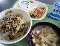 3年生が塩川中の給食を食べるのは、あと6回となりました。そこで、3年生リクエスト献立『もう一度食べたい思い出の給食』を実施していきます。1回目の今日は、人気NO.1丼メニューでした。