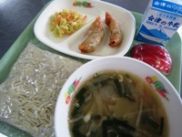 3年生が塩川中の給食を食べるのは、あと3回となりました。3年生リクエスト献立『もう一度食べたい思い出の給食』。2回目の今日は、人気NO.1めんメニューでした。給食のめんメニューのうち、最も人気だったのは、みそラーメンでした。大人気のみそラーメンの相方は、やっぱり人気のあげギョーザ。しその風味とパリパリの食感が絶妙です。思い残すことがないよう、よ~く味わって食べてくれました!