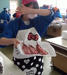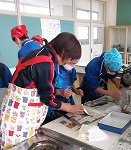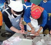 1年3組の調理実習でいわしの蒲焼きに挑戦しました。いわしをさばくことから始めました。頭を切り落とし、指を上手に使って内臓を取り身を開きました。初めての作業におそるおそるの様子もありましたが果敢に挑戦し、おいしい蒲焼きに仕上げました。