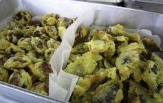 江戸時代、会津地方には“まんじゅう麩”という、まんじゅうの形をした“お麩”があり、お吸い物や天ぷらにして食べられていました。やがて昭和になり、砂糖が自由に食べられるようになってからは“お麩”ではなく“まんじゅう”を天ぷらにして食べるようになったそうです。まんじゅう・にしん・するめいかの天ぷらは、お彼岸やお盆にお供え物として作られ会津地方の広い地域で食べられている郷土料理です。