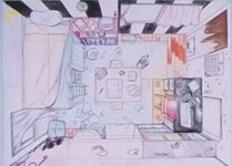 下:県造形秀作審査会に入賞した3年生とその作品