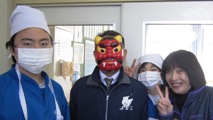 今日は、いわしの梅煮と大豆を使った呉汁、そして節分豆でした。給食時間には赤鬼さんが登場し、みんなを驚かせてくれました!