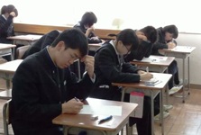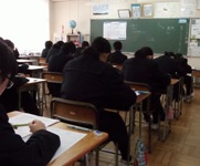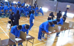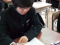 2015年11月19日 11時05分 今日と明日の2日間期末テストを行っています。どの生徒も真剣な表情で問題に向き合っています。この日に向けて計画的に一生懸命勉強してきました。これまでの努力を自信にして存分に力を発揮してほしいと思います。