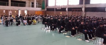 今日は3年生と保護者を対象に進路事務説明会を行いました。入試日程や入試方法、各高校の入試情報などを確認しました。