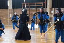 2015年10月16日 10時58分 2年女子の剣道は今週面をつけて基本の打ちこみ稽古しました。面の重さに少々面食らったようですが、楽しく練習をしていました。