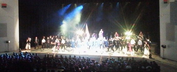 2015年10月16日 11時02分 14日、耶麻地区中学校合同芸術鑑賞会が行われ、塩川中は午前の部に参加してきました。ザ・クレージーエンジェルカンパニーというグループによる「雅咆」というステージでした。ブラスの演奏にダンスやカラーガード、剣舞を加えたプログラムなど大変迫力のある演奏を堪能してきました。また、世界で活躍するバトントワラーの橋本龍さんや口笛奏者の高木満理子さんがゲスト出演されました。最後は会場が一体となったよさこいの演奏で盛り上がりました。