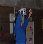2015年10月16日 11時13分 14日、生徒が芸術鑑賞に出かけている時間を利用して修繕工事が行われました。1の2ベランダ修繕箇所の塗装と廊下天井パネルの補修です。