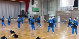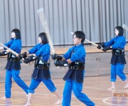 2015年10月1日 18時41分 2年生女子の剣道の授業が始まりました。昨年度に引き続き大場千春先生に指導をお願いしました。1年ぶりの竹刀とあって初めは覚束ない様子もありましたが、基本稽古の復習で次第に感覚を取り戻したようです。今日は初めて防具を身につけました。