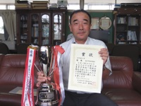 2015年9月24日 09時54分 20日に行われた喜多方一周駅伝では、塩川町体協チームが見事優勝を飾りました。本日、栗村公民館長さんがわざわざ来校され、ずしりと重い優勝カップと賞状を手に中学生選手の活躍をお話ししてくださいました。