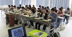 2015年7月5日 15時34分第1学期保護者会に合わせて、学校給食試食会を実施したところ、27名の方に参加していただきました。本校の給食の一番の特徴は、単独校給食であることで、作っている人と食べてくれる人たちの顔がお互いに見えるところです。最新の機器はありませんが、手間と時間をかけて愛情を込めて作っています。