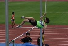 2015年7月9日 18時33分 全会津を勝ち抜いた進藤凌佳さんが県総体陸上競技大会に出場しました。女子棒高跳で自己記録を更新するがんばりを見せ、見事7位に入賞しました。練習を始めてまだ日が浅く恐怖心の克服が大変だったと思います。進藤さんは11日に行われる第三日に走幅跳にも出場する予定です。ガンバレ。
