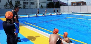 2015年7月13日 18時23分 今日は大変蒸し暑い日となりました。プール工事につきましては何かとご心配をおかけしておりましたが、金曜日から予定委通り仮オープンし、子どもたちの元気な声が響いています。当初の予定ではプール周りのシートは仮置きだったのですが、工事関係者のご努力でしっかりと仕上げられました。