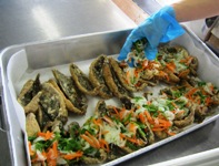 今日の給食は、そんなアジをカラリと揚げて、特製南蛮酢と彩り野菜を一緒に漬け込んだアジの南蛮漬けと、喜多方産の新鮮なアスパラガスのごま和えでした。季節の食材をよ~く味わって食べてくれました!