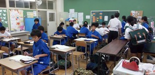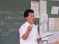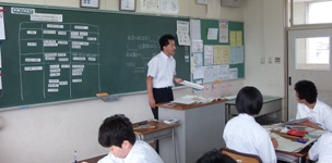 尾﨑先生の教育実習が今日で終了しました。今日は2校時に2年3組で社会の授業をしていただきました。豊富な知識と熱意、温かい眼差しが印象的なとてもいい授業でした。