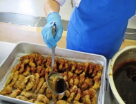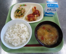 いよいよ今日から中体連!ということで、昨日の給食はソースカツでした。給食室一同、思いを込めながら一つ一つ丁寧に揚げ、特製ソースをかけました。がんばれ!さわやか☆塩中生!!