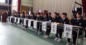 2015年5月18日 17時50分 5,6校時に生徒会総会が行われました。生徒会のスローガン「相互尊重~思いやりの輪を広げよう~」が採択され、各委員会や部活動の計画、予算案が審議されました。各学級での議案書審議で出された質問や要望をもとに、活発で真剣な意見交換が行われました。最後に教務の先生から「今日はすばらしい設計図を描いた。大切なことは、この設計図を常に意識し、実現に向けて心を一つにすること。会長が目標として示した『史上最高の塩川中』を実現してほしい。」との講評がありました。