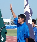 2015年5月20日 18時36分 晴天のもと、第63回全会津中体連陸上競技大会第一日が行われました。選手宣誓は本校キャプテンの佐藤涼平くんでした。時折強い風が吹く競技場に、塩川中学校のユ二フォームが躍動しました。