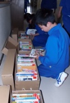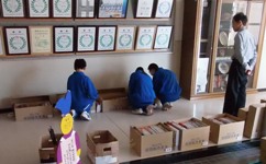 2015年5月22日 18時17分 今日は昼休みを利用して職員玄関ホールが本屋さんになりました。本屋さんが運んできてくれたたくさんの本を見て、生徒が学校で購入してほしい本を選びました。予算の関係もありますが、希望の本が図書室にそろうといいですね。