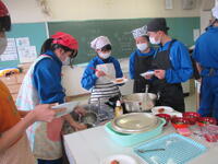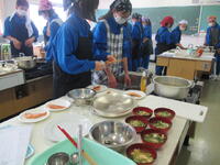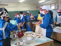 さわやか塩中生 授業の様子(家庭科・調理実習1年2組)