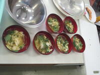 鮭のムニエルとすまし汁づくりでした。3校時目から始めていた調理実習は終盤で、ほとんどの班が最後の味付けと盛り付けを行っていたところでした。
