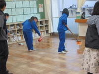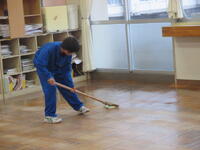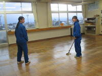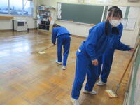 2024年12月9日 16時30分いよいよ今年もあと2週間ほどとなりました。本日の放課後、ボランティア委員会の皆さんが、教室のワックスがけを行いました。液体ワックスを床にかけて、しっかり磨くとピカピカの床面になりました。明朝はきれいな教室が、生徒の皆さんを待ってます。