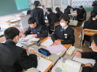 2024年12月6日 11時30分本日、3校時の3年生の授業の様子です。いよいよ12月。教科書には、たくさんの付箋、詳細なメモ書きをしている生徒もいました。学習に取り組む真剣さが、どんどん増してきている3年生です。