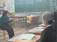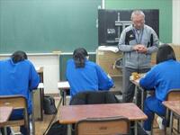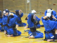 本日の2年生の体育は、先週に続き、武道「剣道」を学んでいます。非常勤講師大場先生に来校いただき、授業を行っていただいています。今日は、はじめに防具を着けていました。※写真は2年2組です。