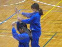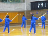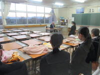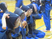 今日の2年生の体育は、武道「剣道」を学んでいます。非常勤講師大場先生に来校いただき、授業を行っていただいています。竹刀の持ち方・振り方、足さばき等などの基本練習を行っていました。ひんやりとした体育館の中、生徒の皆さんは、凜とした武道の精神を学んでいました。※写真は2年2組です。
