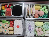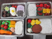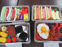 マイランチデーではありません。美味しそうだけど食べることのできない、けれども「作品」としてずっと残る「お弁当」をつくりました。アイディアあふれるユニークな弁当、とてもおいしそうな弁当など、工夫を凝らした作品です。後日、ご家庭に持ち帰りますので、ぜひご家庭で話題にしていただければと思います。