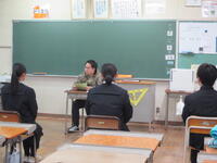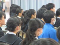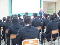 学年主任から学校生活や進路についてなどのお話しがありました。また、進路指導担当の先生から、進路事務等についてさらに細かく説明がありました。真剣に話を聴いていた3年生、入試まであと数ヶ月です。11月の三者面談以降、先生方から進路の話がいつも盛りだくさんとなりました。それくらい進路実現に向けて、真剣に考えなければならない時期となってきています。一日一日を大切にして、自分の進路実現に向けて頑張ってほしいものです。ぜひ、ご家庭でも励ましをお願いいたします。