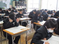 本日は、3年生が実力テスト、1・2年生は市総合学力調査を行っています。