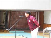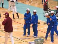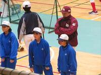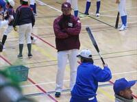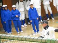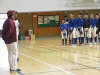 11月30日、塩川町体育館において、東北楽天・ゴールデンイーグル伊藤茉央選手(本校卒業生)、千葉ロッテマリーンズ諸積兼司コーチ(会津若松市出身)による野球教室が開かれました。残念ながら、前日からの雨で本校グランドが使用できなかったため、塩川町体育館で行われました。本校野球部とソフトボール部の皆さんを含め、市内外の小中学生と指導者を含め約110名の参加がありました。