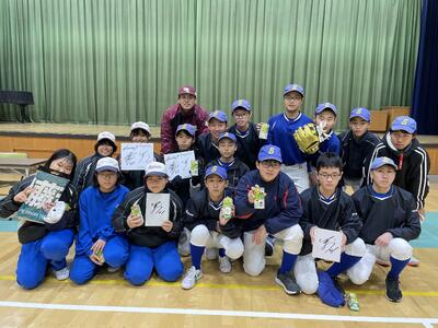身体ほぐしのウォーミングアップから、キャッチボール、捕球練習、バッティング練習など、あっという間の3時間が過ぎてしまいました。ご指導いただいた伊藤選手・諸積コーチをはじめ、市教育委員会様や関係者の皆様に、このような機会をいただき、ありがとうございました。