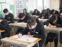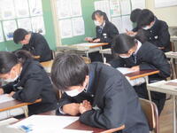 2024年11月20日 10時30分本日は、2学期・期末テストの1日目(2校時の様子)です。どの生徒も、問題に真剣に取り組んでいます。授業で獲得したさまざまな力、自分で計画した家庭学習の成果を十分に発揮してほしいと思います。