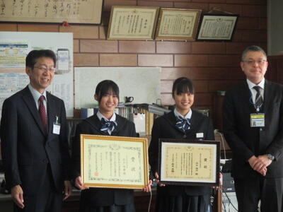 県教育長賞に石戸さん、喜多方税務署長賞に瓜生さんが選ばれ、それぞれ表彰状を授与されました。