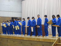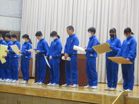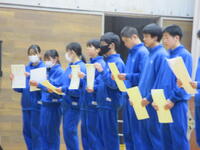 まず、生徒の皆さんが、それぞれの場で頑張って獲得・授与された表彰の披露を行いました。賞状を披露した生徒の皆さんは、次の大会やその他の活動に向け、新たな抱負を述べました。