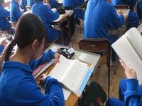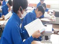 2組は、国語の授業でした。題材は「故郷」(魯迅)です。中国の清王朝~中華人民共和国成立までの混乱の時代を背景にした中国文学の学習です。生徒の皆さんは、ペアで音読の取り組んでいました。