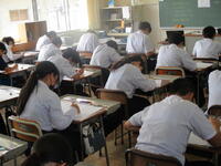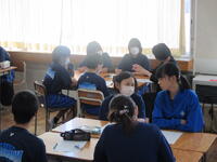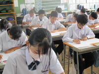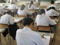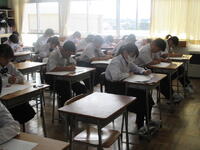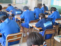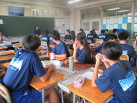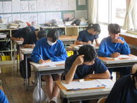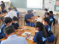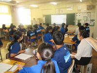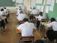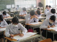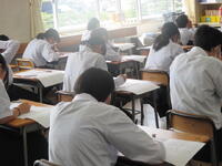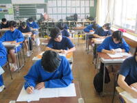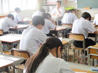 校長から、本校生徒の学習状況や生活状況等について説明後、質疑応答、授業(中間テスト)参観をしていただきました。
