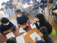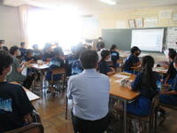 まず、事務局から、各年代の健康状態、う歯の状態、生活習慣やメディア利用の状態、中学生の情報端末利用の実際を報告しました。その後、参加者の皆さんに、本校養護教諭をコーディネターとした1年生の学級活動「スマホの使い方について考えよう」の授業で、生徒の皆さんの話し合いに参加していただきました。この時間の最後に、学校医・熊田先生から生徒に皆さんに向けて、メディアとの付き合い方など「生活習慣を見直す」「自発的にメディアを手放す時間を作る」が大切であるとのお話しをいただきました。ありがとうございました。