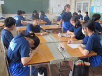 これは、県教委高校教育課が主催で、専門教科を学ぶ高校生が中学生に対する体験学習を支援することで、将来の進路実現や職業選択へのきっかけ作りに行っている事業です。会津農林高校の生徒の皆さん、教官の先生方が、丁寧に説明や体験を指導してくださいました。