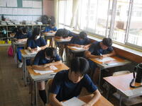 2024年9月25日 12時00分本日は、中間テストです。各クラスでは、真剣に解答用紙に記入していました。終わりのチャイムが鳴るまで、集中する姿がとてもすばらしい姿でした。学習が内容が定着しているか、身についているかを確認するテストです。 生徒の皆さんは、綿密な計画と十分な時間をかけて、テストに臨んでいます。