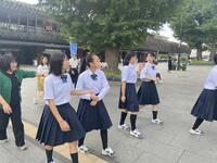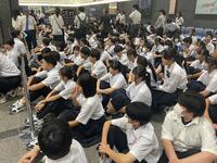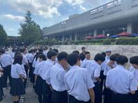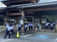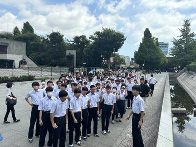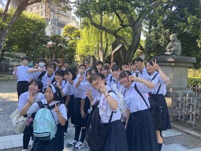 2024年9月12日 11時40分各班は、事前に吟味した行動計画により自主研修を行っています。出発前に、学年主任から熱中症対策について指導がありました。外の体感温度が高いように感じますので、生徒の皆さんも注意して行動しています。
