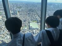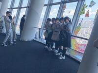 2024年9月11日 14時00分スカイツリーに到着しました。エレベーターで上がって、班ごとに施設内を見学中です。