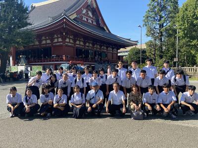 2024年9月11日 16時10分浅草寺にきました。外国の方の参拝者が多くて、生徒のみなさんはびっくりしていました。