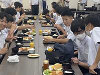2024年9月12日 08時45分今朝の昼食の様子です。少し眠そうな生徒がいましたが…二日目に向け、元気よくあいさつした後、たくさん食べてエネルギー補給が完了です。