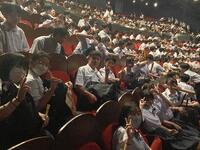 演者のみなさんのステージ全面を使った素晴らしい歌やダンスを楽しみました。また、舞台美術やBGMだけでなく、衣装や動物の人形たちも素晴らしいものでした。ストーリーにも生徒の皆さん、胸打たれていました。