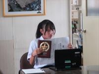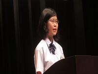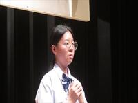 暗唱の部では、五十嵐さんは「I hate Mnju」、武藤さんは「Tom Has To Work On Satureday」を、それぞれ表情豊かに発表しました。創作の部では、福地さんは「 Gift 」、紺野さんは「 Indivijuality 」のタイトルで、オリジナル作文を発表しました。