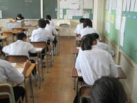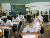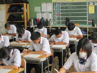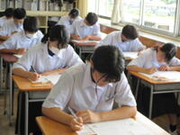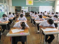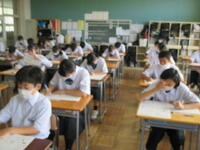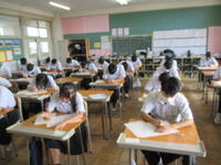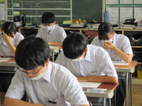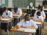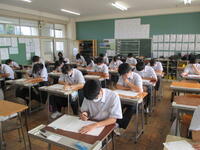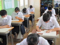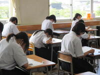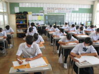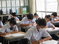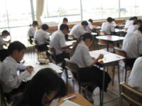 2024年8月27日 10時45分本日、全校生徒は、課題テスト(3年生は実力テスト)に挑戦しています。1・2年生のテストの内、一部は昨日実施していました。夏休み終了直後ですが、それぞれが緊張感のもと、問題に真剣に取り組んでいました。この後ほぼ毎月、実力テストを実施していきますので、自分の進路実現に向けて、しっかりと学習を進めてほしいと思います。