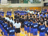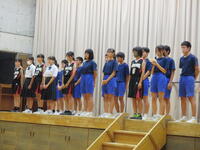 2024年9月3日 09時00分バトンタッチ集会の後、全会津駅伝競走大会と福島県小・中学校音楽祭(第1部合唱) への壮行会を行いました。
