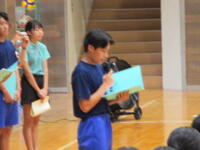バトンタッチ集会では、3年生から1・2年生へ部活動の引き継ぎを行いました。1・2年生の新たな部長・副部長の任命の後、部活動ごとに先輩(3年生)から思いを聞きいた後、1・2年生は感謝の気持ちをもって、今後の活動の決意を述べました。1・2年生も、3年生も今後の新たな目標達成のため、一生懸命頑張っていこうとする気持ちを高めることができました。